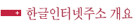 | ‘한글인터넷주소’는 www로 시작하는 영문 인터넷주소 대신 회사명, 상품명, 서비스, 개인실명에서부터 숫자로 된 전화번호, 핸드폰번호, 기념일 등의 한글, 영문, 숫자를 인터넷주소로 사용할 수 있는 인터넷 주소 서비스입니다. 한국에서는 한글을 주로 사용하기에 통칭 ‘한글인터넷주소’라고 합니다. |