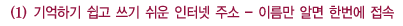 한글인터넷주소는 누구에게나 잘 알려진 회사명이나 브랜드명 혹은 유명 연예인이나 정치인의 이름 그대로를 인터넷 주소로 하용하여 이름만 알면 바로 해당사이트에 연결할 수 있어 편리합니다.