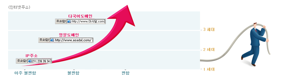 | 인터넷주소의 경우 사용의 편리성을 중심으로 점점 변화하고 있으며 향후 유비쿼터스(Ubiquitous)의 핵심이 되는 RFID(Radio Frequency Identification)와 무선/모바일 인터넷 등으로 발전할 것이라 예상됩니다. |