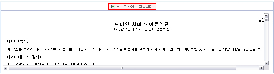 | * 이용약관에 동의하여지만 도메인의 신규신청이 가능합니다. |