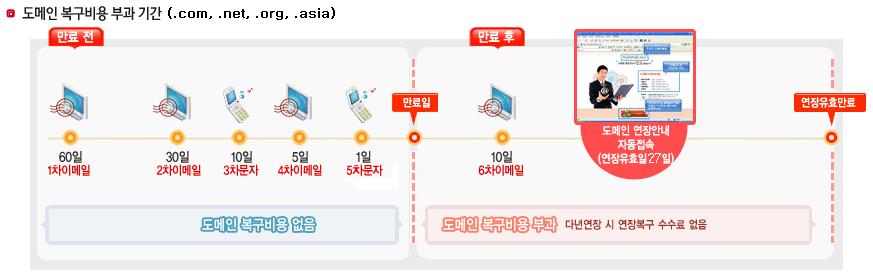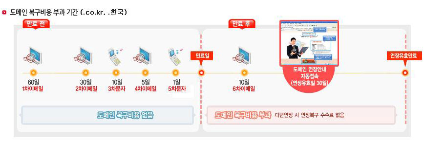 - 도메인 복구비용은 만료 후 기간연장 신청 시 자동으로 부과됩니다.