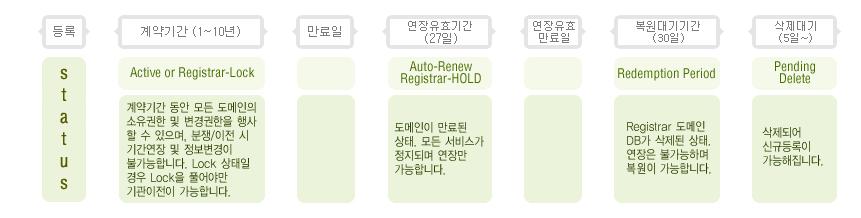 | 도메인 연장유효일이 만료되어 등록대행사(Registrar)의 도메인 정보에서 도메인이 완전 삭제된 후 도메인의 소유자에게 한 번 더 도메인을 복원해 사용할 수 있는 기회를 주는 서비스를 말합니다. 도메인 등록대행사(Registrar)의 연장유효 대기기간이 만료되면 일괄적으로 도메인 정보가 삭제되며 도메인 최상위 관리 기관(Registry)은 삭제된 도메인에 대해 도메인 정보를 약 27일 동안 유지하게 됩니다. 이 때 도메인의 상태는 Redemption Period로 유지되며 30일 동안 도메인을 기존 사용자가 복원할 수 있도록 도메인의 정보를 유지하게 됩니다. 복원신청의 경우 복원대기기간 안에 도메인 정보에 대한 복원비용과 1년 연장 수수료를 입금해 도메인을 복원하게 됩니다. |