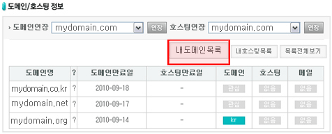 : >내정보 >>내도메인목록 |