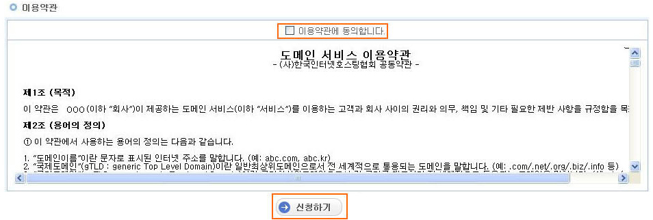 (6) 이용약관 : 신청한 서비스에 대한 이용약관을 확인하실 수 있는 필드입니다. “이용약관에 동의합니다.”를 선택 하신 후 신청하기를 클릭해 서비스를 신청해 주시기 바랍니다. |